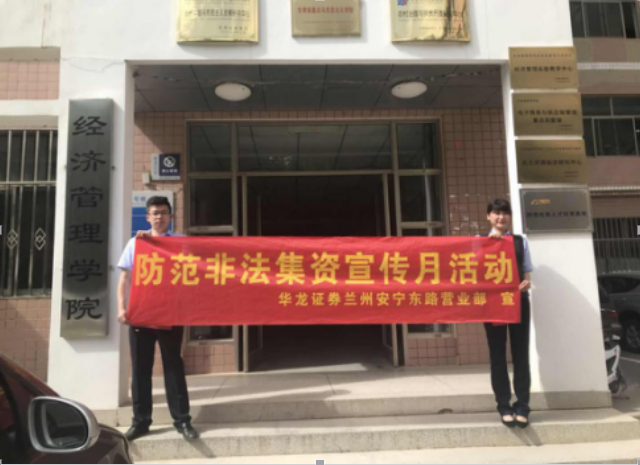 2018年5月24日,华龙证券兰州安宁东路营业部与华龙证券投资者教育基地走进兰州交通大学,共同举办了以“防范非法集资宣传”为主题的“防非宣传”进高校的专题活动。希望通过此次活动能给更多的在校大学生普及法律金融知识,提高大学生风险防范意识,做到以防范为主,从源头上遏制非法集资势头,确保宣传教育取得实效。