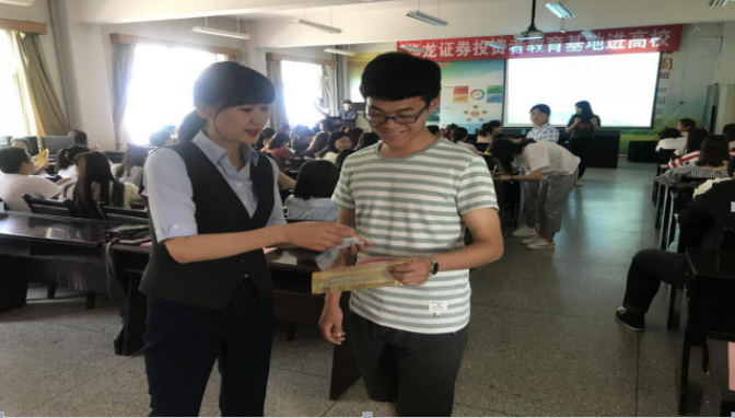 为积极营造防范非法集资宣传教育的氛围,华龙证券投资者教育基地针对兰州交通大学经济管理学院学生,做了一次“防范非法集资宣传”的知识讲座,具体包括非法集资的特征、形式、校园借贷危害的案例分析、如何安全使用计算机、使用正确的网址登录、使用正确的金融工具和如何保护个人信息等。我营业部针对非法集资的特点和表现形式向学生们印发了《防范非法集资,拒绝高利诱惑》、《非法集资新套路》等宣传资料,为了达到更好的宣传效果,还通过发放问卷形式让学生们进一步加深印象。
