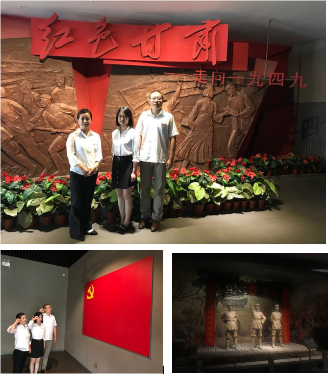 甘肃省博物馆位于甘肃省兰州市七里河区,是甘肃省规模较大的综合性博物馆,该馆先后被评选为全国爱国主义教育基地和全国科普教育基地,是开展科普宣传、教育的主要阵地。全体党员先后参观了“红色甘肃”展馆、“甘肃彩陶”展馆、“甘肃丝绸之路文明”展馆、“甘肃古生物化石”展馆等著名展馆。走进红色甘肃展馆,首先映入眼帘的是“红色甘肃———走向一九四九”几个醒目的红色大字,红色甘肃展馆通过火种篇、抗争篇、铁流篇、激荡篇、曙光篇五个篇章,像一副画卷向我们介绍了甘肃的革命斗争史,展现了甘肃特支的成立、南梁烽火的燃起、陕甘根据地的创建、红军长征胜利会师、西路军鏖战河西以及甘肃各族人民在中国共产党的领导下一步步实现中华民族由衰败走向复兴的伟大历史。通过追忆革命先辈们历经的千难万险和艰苦岁月,大家深深被先辈们英勇斗争、不怕牺牲的精神所震撼和激励,纷纷表示要在今后的工作和生活中积极传承和发扬老一辈无产阶级革命家的优良传统,以十九大精神为指引,为早日建成富强民主文明和谐美丽的社会主义现代化强国而努力奋斗。