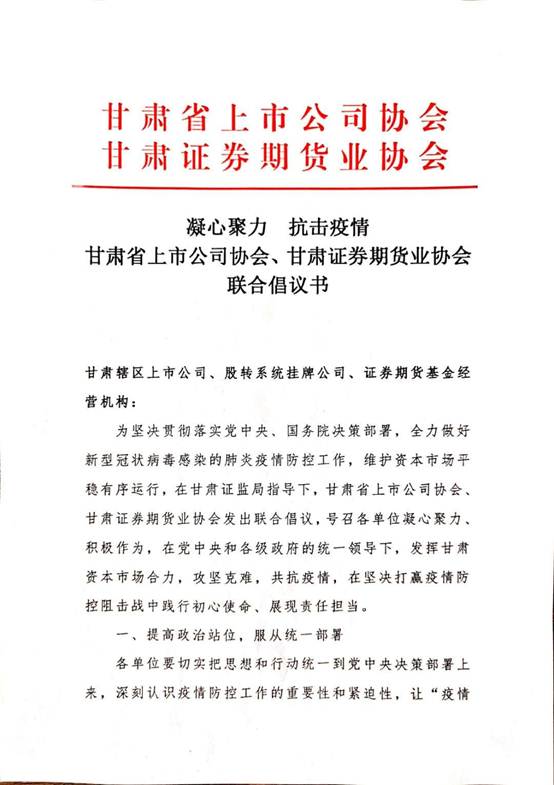 凝心聚力 抗击疫情 甘肃省上市公司协会、甘肃证券期货业协会联合倡议书