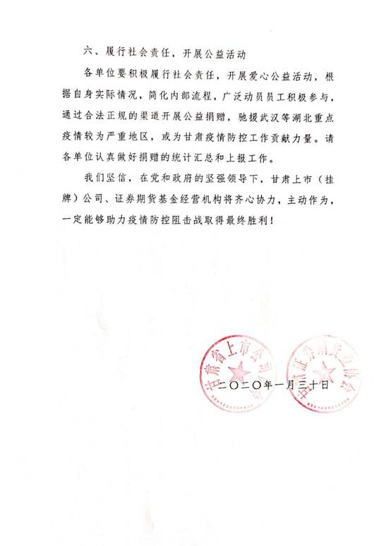 凝心聚力 抗击疫情 甘肃省上市公司协会、甘肃证券期货业协会联合倡议书 -九州av