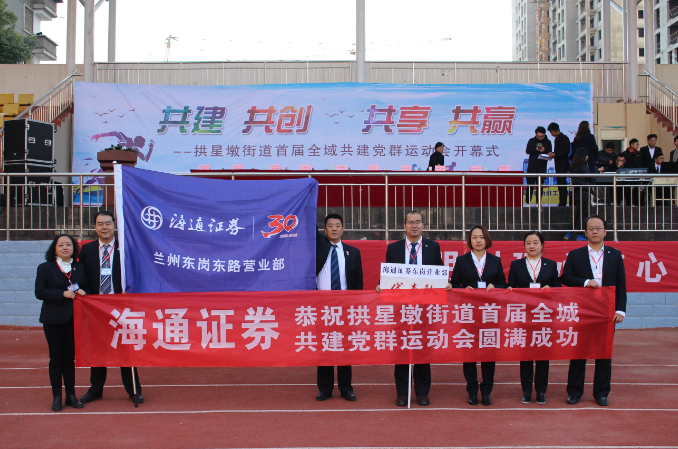 为了展现营业部员工的青春活力,向广大市民宣传海通证券形象和品牌,兰州东岗东路营业部组织员工参加了2018年10月29日由拱星墩街道举办的首届全域共建党群运动会。此次运动会得到了辖区各单位的积极响应,共有38家企业和单位报名参加了拔河、羽毛球等6个竞赛项目和仙人指路、平板支撑等多个趣味竞赛项目。