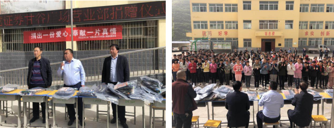 古坡学校位于甘谷县古坡镇,与武山、礼县相接壤,是甘谷县最南边偏远山区的农村学校,贫困学生较多,交通极度不便。营业部在做公益活动的过程中,偶然接触到古坡学校,在了解到孩子们学校生活现状后,感到非常震撼,自发捐款购买了各类学习用品,给古坡学校的孩子们带去温暖,带去希望。