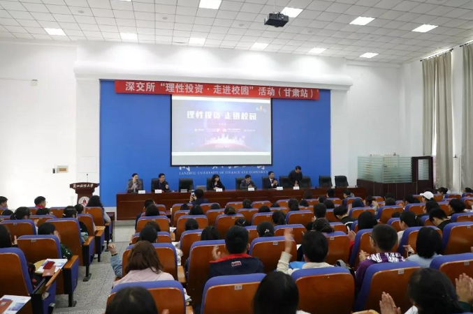 10月23日下午,深交所联合中证中小投资者服务中心、甘肃证监局、华龙证券在兰州财经大学开展第二期“理性投资,走进校园”活动,为院校200余名师生举办投资者教育专题讲座。多位讲师就资本市场发展概况、宏观经济形势、投资者权益等主题带来了形式多样、生动有趣的现场讲课,并与院校师生互动问答,积极推动投资者教育纳入国民教育试点工作。