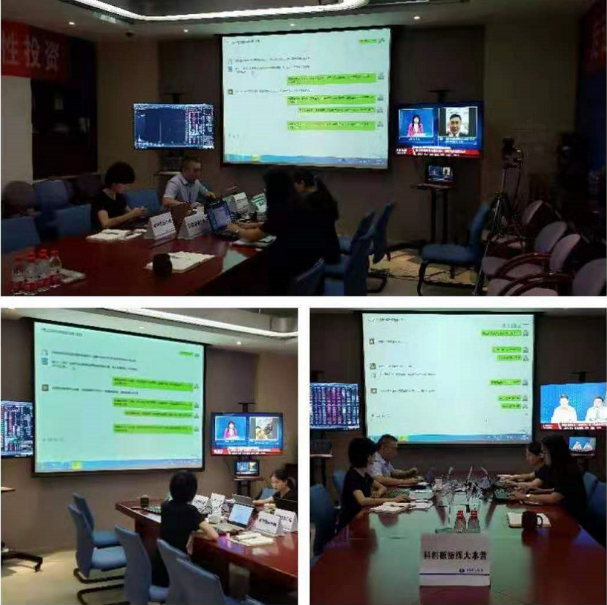 集合竞价结束后,集中营运小组每5分钟对科创板股票实时交易数据进行一次跟踪汇报,信用业务小组对客户发生的融资买入及融券卖出科创板股票数据实时汇报,风控小组对个股异常交易情况进行实时反馈,信息技术小组对各交易系统运行情况进行实时监控,分公司科创板股票实时交易和系统运行情况通过大屏幕联动展示。