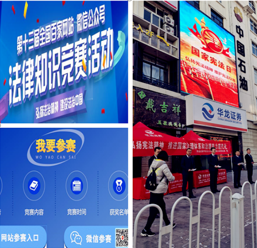 让宪法宣传走进人民群众,使宪法精神深入人心。分公司在商业聚集区、中心广场等开展主题宣传活动,认真解答群众的法律咨询;制作专题微信页面,向线上投资者普及法规知识;在营业部现场设置普法咨询台,开辟普法宣传专栏、派发宣传资料及手册,电子屏滚动播放宪法宣传标语、法律法规,引导广大市民充分认识依法治国的重大意义,以宪法精神凝心聚力,进一步增强宪法权威意识。