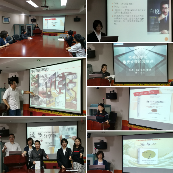 繁忙的工作让大家应接不暇,科创板宣传、举办投资者报告会、反洗钱知识培训、工会各项活动就好像跑接力赛一样,一棒接一棒,马不停蹄。尽管如此,我们这群爱读书的人依然坚持“忙中偷闲”,并渴望通过读书分享会的方式表达我们的情感。本次分享的作品题材新颖,内容更为丰富实用。白雪分享的《白说》,文中收录的文章都是白岩松老师多年来的演讲,书中的经典语句,没有教条,极少理论,像一个充满睿智的人与你促膝谈心。通过细细品味,你会发现这本书所记录的话语能带给我们新的思考和对未来的构思。不管是世界五百强的超级大公司,还是私人企业的小公司,好的营销策略是企业发展重要一环,同时它更像是冲锋陷阵的士兵在没有硝烟的战场中浴血奋战。那么企业如何从嘈杂混乱的市场中脱颖而出,就来听听周总为我们带来的《哈佛商学院最受欢迎的营销课》。周总通过书中介绍的经典案例向大家讲述了品牌营销的三大核心战略,通过对谷歌、宜家、红牛、苹果等著名案例的讲解,让我们看到营销品牌战略灵活运用的魅力,这种全新视野的体验,使我们更加深刻理解知识更新的重要性。作为资深吃货的张斐这次分享的是《巧克力》。通过他的精彩讲述,大家不仅知道了巧克力的“前世今生”,更揭开了巧克力制作工艺的神秘面纱,配上精美的ppt图片,真是让人垂涎三尺。菊是日本皇室家徽,刀是武士道文化的象征,王欣通过一本《菊与刀》向大家展现了日本民族的众生相,她用夹叙夹议的讲述方式再现了日本人性格形成、文化发展的必然和合理性。刘海棠这次分享的作品是人格心理学著作《自卑与超越》。她绘声绘色的讲解加上发人深省的ppt内容,我们仿佛跟随着演讲者的逻辑把自己重新“解剖”了一遍,引导我们在人生的路途中更好的把握自己,超越自己。