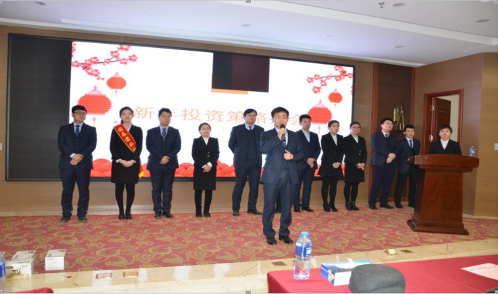 在投资者策略报告会尾声,由我营业部总经理王燕军致辞,他说,感谢各位投资者多年来对我营业部一如既往的支持和信任,未来我营业部将以更好的服务来回馈各位投资者。最后营业部全体员工上台向投资者送上我们2018年的新年祝福。