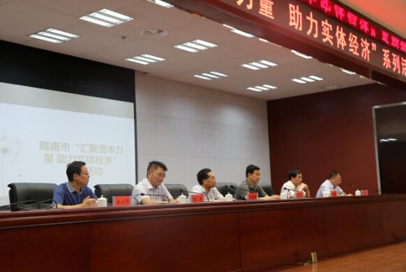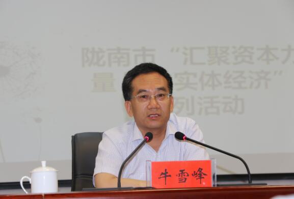 为贯彻落实甘肃省第十三次党代会、全国证券期货监管会议精神,进一步推动资本市场服务实体经济发展,由甘肃省政府金融办与甘肃证监局联合主办,陇南市政府和甘肃证券期货业协会承办的“汇聚资本力量助力实体经济”系列活动2017年7月10日在陇南市正式启动,活动主要内容包括资本市场基本知识和政策宣讲及证券经营机构与县区政府和企业一对一精准对接服务。甘肃证监局党委书记、局长牛雪峰,甘肃证监局党委委员、副局长付惟龙,甘肃证监局机构处处长、稽查处处长柴小平,甘肃省政府金融办党组成员、副主任梁虎堂,陇南市市委常委、副市长张越,甘肃证券期货业协会常务副会长兼秘书长陈耔宏等出席活动。陇南市市直有关单位负责人,各县区分管领导、金融办主要负责人、辖区主要证券经营机构负责人和陇南市重点企业负责人参加了此次活动。