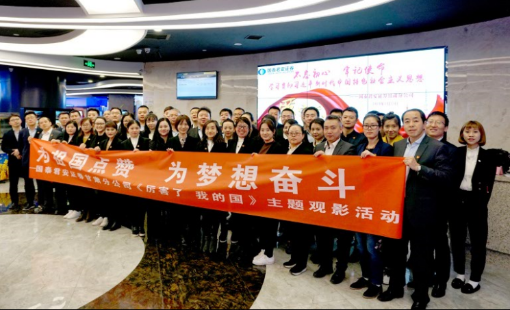 3月13日,在国泰君安证券股份有限公司甘肃分公司党总支的组织下,分布在陇原大地近200名员工同时间、同脚步来到影院,观看大型记录影片《厉害了 我的国》。与其说是公司组织了观影活动,不如说是影片凝聚了全员的期待,热忱与盼望将大家召集到了荧幕前。影片如同一幅壮丽的画卷,将党的十八大以来国家的发展和成就在观众面前徐徐展开,又如同一部辉煌的史诗,将祖国近五年来的伟大发展及社会主义现代化建设所取得的的历史性成就,一点一滴、一笔一划地书写在每一个观众的心中与脑海之中。