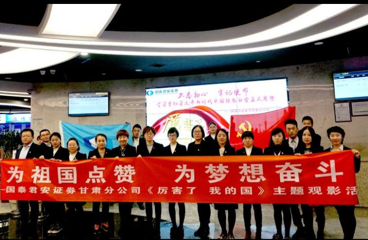 十九大的春风已经扬起,国泰君安证券甘肃分公司将始终以十九大精神为指引,秉承公司共识,竭力为辖区内实体经济的发展做出新的贡献,为国家金融产业的腾飞奉献最真诚的力量。