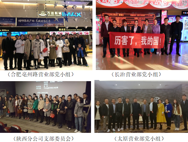 公司各地分支机构积极响应,组织开展观影活动。公司机关全体人员于3月9日、10日分批、分次在兰州华联影城观看《厉害了,我的国》。一起见证祖国发展的辉煌成就,一同感受新时代的大国豪情。
