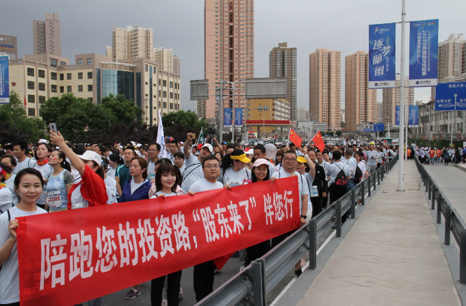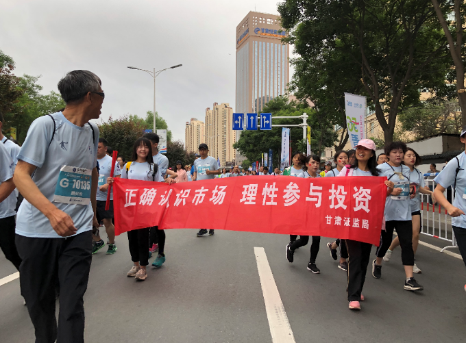 2019年6月2日,蓝天白云之下,草木欣然;黄河风情线上,人头攒动。一年一度的兰州国际马拉松赛于上午7时30分鸣枪开跑,赛事吸引了来自19个国家及地区的40007名选手参赛。这是整个城市的盛大节日,起跑处国歌阵阵,彩旗飘飘,借助“激情马拉松,全民嘉年华”的火热氛围,甘肃证监局、甘肃证券期货业协会携手辖区法人机构华龙证券股份有限公司现场助力,拉起“陪跑您的投资路,‘股东来了’伴您行”条幅和绘有比赛图标、参赛二维码的参赛展布,为2019“股东来了”投资者权益知识竞赛宣传造势,成为比赛起点又一道亮丽的风景线。
