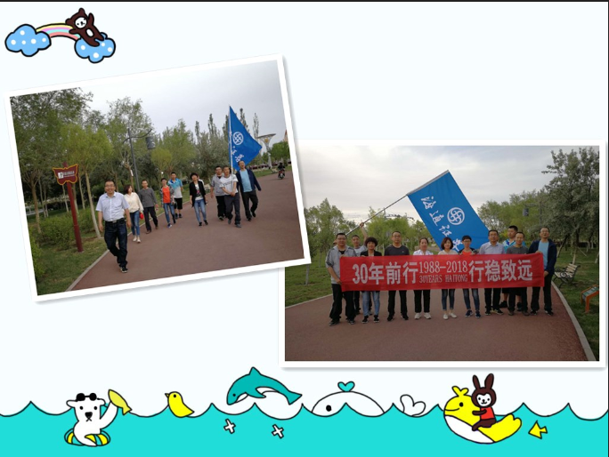为了庆祝公司成立30周年,海通证券公司举办了“30年前行,行稳致远”——庆祝公司成立30周年网络健康走活动,本次活动自5月28日正式开始。5月28日当天晚上7:30分海通证券金昌营业部全体员工在金昌龙首湖畔集合,随后大家拉起司庆横幅、举起海通证券的旗帜一起沿龙首湖进行健康走活动。本次网络健康走活动通过“海通的足迹”让全体员工共同回顾公司发展历程,激发海通人的爱司热情,增强员工的自豪感、凝聚力和向心力,坚定公司发展的信心,传承海通的文化,向外界广泛传播海通行稳致远的品牌形象。同时大家通过参与网络健康走活动增强了全体员工参与健身的积极性和持续性,让全体员工以更健康的体魄,愉悦的心情参与到公司健康、稳定、持续的发展中,为海通的不断发展壮大贡献各自的力量。