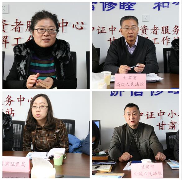 兰州市中级人民法院是纠纷多元化解机制的试点法院,也是甘肃证券期货业协会的合作法院。民二庭庭长柴克辉法官认为调解组织对纠纷的有效化解是对法院诉讼压力的极大缓解,诉讼成本高、时间长,举证对双方当事人来说都有难度,往往造成纠纷难以化解,最后导致层层上诉、甚至上访等恶性事件。接下来司法系统与调解组织应加强合作,比如将调解员纳入人民陪审员队伍,法官参加证券行业组织的业务培训等。