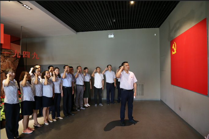 参观结束后,在感动和震撼的氛围中,新进党员代表站在党旗下向伟大的党诵读了《七一献诗》,同时全体党员在分公司党总支书记的带领下,面对党旗,肃立宣誓,重温了入党誓词。大家纷纷表示,今天活动意义深刻,要认真学习和秉承革命先辈坚定执著、忠贞不渝的为党情怀,不忘初心,牢记使命,以主题教育活动的实际成效推动各项工作健康发展。