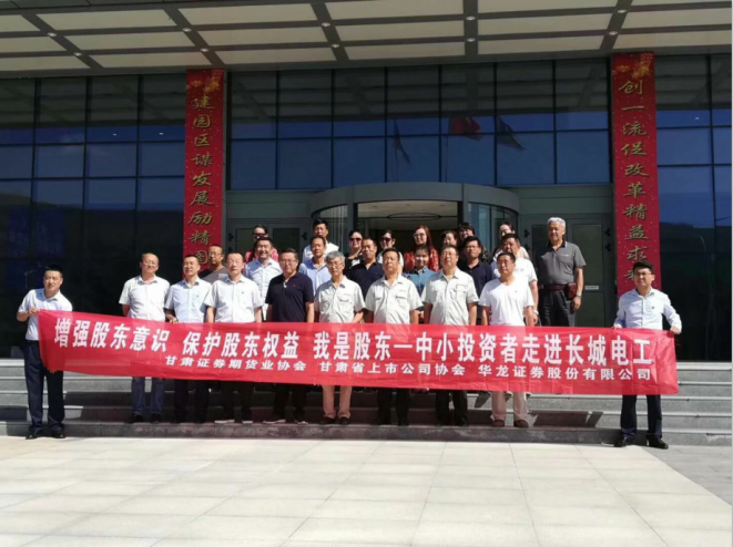 2018年8月22日,作为上交所2018年投资者保护和教育系列活动之一,华龙证券股份有限公司天水分公司和平凉分公司举行了2018年“我是股东”走进上市公司活动。活动组织了天水分公司和平凉分公司30余位中小投资者到长城电工股份有限公司实地参观调研,听取上市公司情况介绍,并就投资者关心的问题进行了交流。