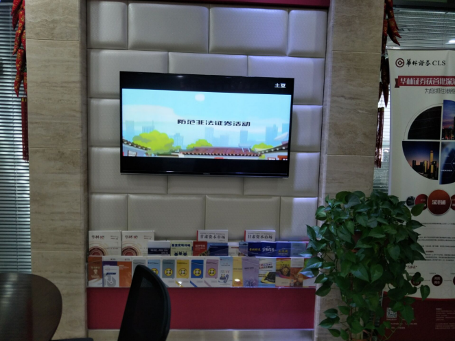 营业部大厅循环播放非法证券案例视频等内容,形象生动地向投资者揭露非法证券活动的表现特点、作案手段、诈骗实质,使营业部办理业务的投资者更直观地了解非法证券行为。同时,将甘肃证券期货业协会统一提供的非法证券宣传案例、投资者业务指南等宣传资料摆放在柜台显著位置供投资者取阅,积极向前来办理业务或咨询业务的投资者进行讲解宣传。