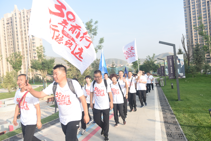 上午7:30分,在碧桂园金城墅徒步活动起点处,全体参与人员统一身着公司司庆文化衫,高声挥臂喊出了“30年前行,行稳致远 ;30年,我们一起再出发”的活动口号。员工个个精神抖擞,脸上洋溢着快乐的笑容,迈着矫健的步伐,信步走在美丽的徒步大道上。一路上,大家呼吸着新鲜的空气、感受着夏日的气息、相互间交流感情,尽情舒怀,释放压力。通过开展徒步活动,对增强团队凝聚力、培养员工乐观向上的精神、展现员工团结友爱的良好风貌具有重要意义。