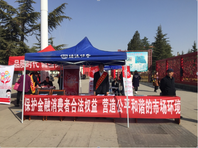为进一步增强金融消费者的自我保护意识,优化金融消费环境,进一步引导广大投资者正确认识资本市场,坚持长期投资,价值投资、理性投资,海通证券庆阳营业部于3月15日金融消费者权益保护日当天在庆阳市东湖公园门前开展了由人行庆阳市中心支行组织的金融消费者权益保护宣传活动。
