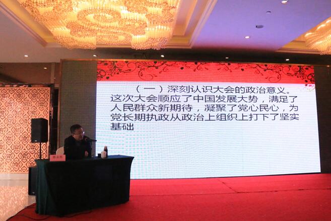 本次报告会邀请了甘肃省委党校陈永胜博士担任讲师,做了题为“为夺取新时代中国特色社会主义伟大胜利而奋斗——党的十九大报告精神解读”专题报道,从十九大的政治意义、理论意义、实践意义、历史意义、世界意义五个层面帮助与会者全面认识十九大报告的思想内涵,并对会议主要内容做了系统透彻的阐释和解读,从大会主题、战略判断、新时代思想的提出、“14个坚持”基本方略、两个百年发展阶段、九大行动纲领一直到如何加强党的领导,讲解生动、深入浅出、入脑入心。