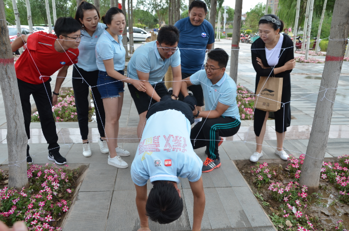 8月11日上午7点多,各券商营业部的小伙伴们相继来到滨湖广场,8点整活动正式开始。本次拓展活动设置了六个项目,分别是“环居延湖接力赛”、“跳绳比赛”、“摸石过河”、“企鹅走路”、“穿越盘丝洞”、“吸管运输”。让人印象最深刻的是“穿越盘丝洞”项目,该比赛项目需要每组派出五人,要在规定的时间内从若干个大小不一的网孔中穿过去三个人,身体不能碰到网线,且不能重复使用网孔。这是一个典型的团队合作的项目,每位成员必须全力配合,既要快、更要稳,才能在最短的时间内完成任务。通过各位小伙伴的努力最终华安证券张掖营业部在3分钟内完成比赛,获得此项目的第一名。通过这个看似简单的游戏,使得每位小伙伴深刻感受到合作、责任的重要性。最终经过近三个小时对体力、毅力和团队默契的考验,这场充满趣味性的联谊活动在大家的欢笑声中落下帷幕。最后通过累计得分的形式评选出一、二、三等奖,各营业部的总经理对成绩优异的获奖者进行了颁奖。