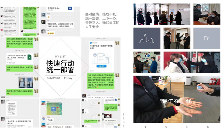 过年放假期间,每天通过邮件、微信群进行及时沟通、反馈,确保对员工及家属的身体情况进行全面了解;第一时间成立疫情防控应急处置落实小组,压实责任、提高重视、结合疫情发展,提早部署,出台《防范要点指引》、《应急预案》、《员工及家属情况摸底调查表》、《防控工作近期工作安排》、《集中营运、信息技术应急预案》……