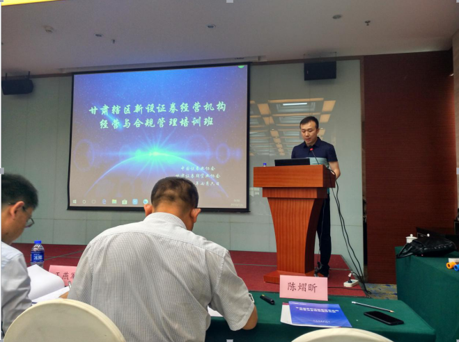 为帮助辖区新设证券经营机构提高经营管理水平,规范业务运作,提升综合金融服务能力,中国证券业协会与甘肃证券期货业协会于2018年7月6日联合举办了“甘肃辖区新设证券经营机构经营与合规管理培训班”。辖区证券经营机构新任负责人、合规管理人员近150人参加了培训。甘肃证监局机构处副处长王彬应邀到会并亲自授课。协会副秘书长兼会员部主任陈熠昕主持并致开班辞。