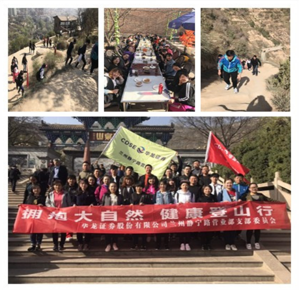 人间四月芳菲日,万紫千红总是春!阳春四月,惠风和畅,正是赏春踏青的好季节。为丰富营业部全体员工文体娱乐活动,增强员工健康意识,营造团结协助、和谐发展的团队精神及昂扬奋进的精神风貌,4月8日静宁路营业部开展题为“拥抱大自然 ,健康登山行”的春季踏青活动。
