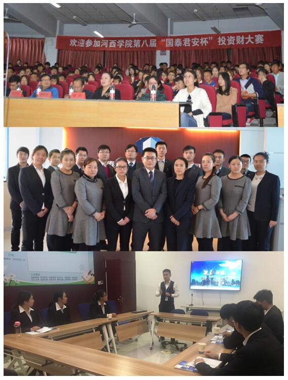 我们联手河西学院连续举办八届投资理财大赛,以竞赛的形式鼓励同学们接触、熟悉证券市场,并从中选拔出优秀的参赛者给予实习机会。再联合高校招聘,选拔出对证券业有浓厚兴趣的同学,为他们提供了解证券业,走进证券公司的契机。