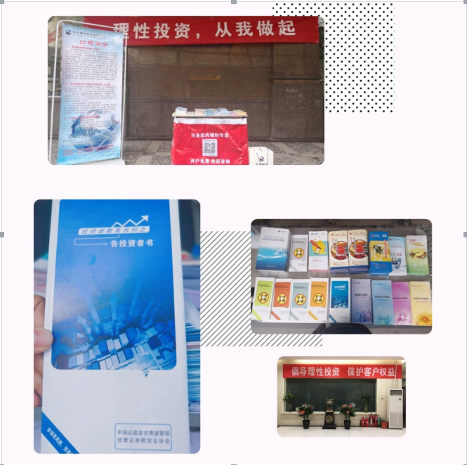 为加强对非现场客户的宣传力度,总部通过短信方式向非现场客户发送宣传短信约7000条,内容为:“尊敬的投资者,甘肃证监局、甘肃证券期货业协会、华龙期货温馨提醒您,人生财富需要理性规划,投资风险需要防范规避。” 同时通过网络开展宣传,在华龙期货官方微信公众号以及华龙期货官方网站的投资者教育专栏普及关于“证券期货投资者适当性管理办法”“如何识别真假期货交易”等证券期货知识,引起投资者的注意,倡导投资者理性投资,提高识别和抵制各种非法证券期货活动意识和能力,防止上当受骗,保护个人财产安全。
