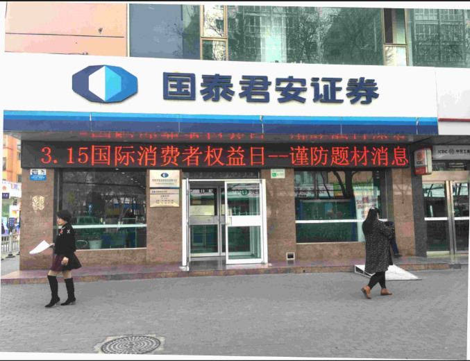 为扩大宣传覆盖范围,对于营业部外的周边投资者,活动期间在营业部跑马屏上滚动播放“3.15国际消费者权益日:谨防题材消息陷阱,莫攀内幕交易险峰,莫信非法证券谎言”内容,帮助所有外部人员了解活动,进一步提醒投资者维护个人权益。3.15活动当天,营业部组织员工在场外设置宣传台,为广大客户普及3.15消费者权益保护知识、传播理性投资理念。