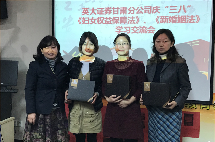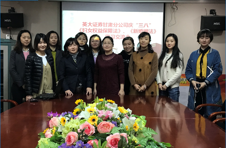 为隆重庆祝2018年“三八”国际妇女节,进一步宣传贯彻《婚姻法》、《妇女权益保障法》等保障妇女权益的法律法规,提高广大女职工的法律意识,引导女职工做一个知法、懂法、守法、用法的新时代女性,3月7日下午,英大证券兰州营业部开展了“庆三八 展风采”女职工“知法、懂法、守法、用法”学习交流会及《妇女权益保障法》知识竞赛等系列活动。