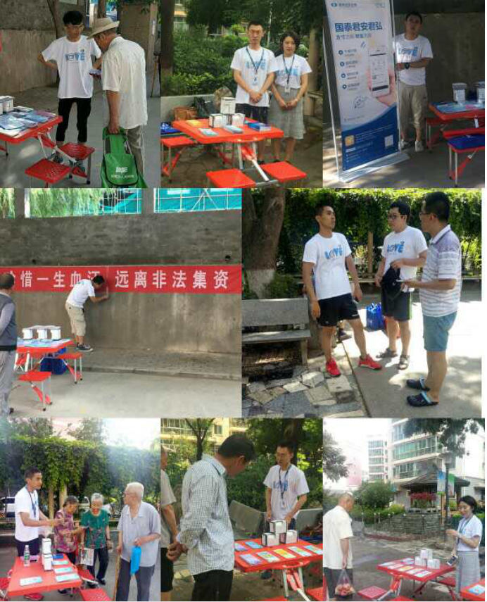 作为证券市场的窗口单位,证券公司营业部应定期做好投资者适当性管理,保护投资者权益方面的市场宣传工作,为此国泰君安证券兰州酒泉路营业部于2018年8月举办了为期一个月的走进社区,加强宣传,识规则、明风险,远离非法集资等(包括制度政策、反洗钱、非法集资等)宣传活动,将行业信息及时传递给广大投资者(特别是中小投资者),使其更多的了解适当性管理方面的制度与政策,以加强自我保护意识和自我保护能力。