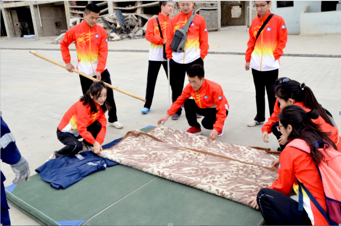 第二个环节由基地培训部李主任带领全员进行户外学习。李主任首先向大家介绍了各类先进的救援设备及其使用方法;其次对基地内的各类模拟灾后环境及施救方式向全员进行详细讲解;紧接着,救援队员将全体成员分为小组,带领各组进行灾难应急演练及灾难自救、互救技能实操;最后,在救援队的指导下全员开展了一场特殊的“应急救援大比武”。实地考察及亲自救援实践操作使全员都能够将所学到的理论知识同危险情况紧密联系,充分地将紧急避险逃生技能运用到实际中。在危急时刻,全员紧密地团结在了一起,协同协作,凝心聚力,做到了灾难来临之前有准备,灾难来临之时不慌乱,灾难来临之后能够有效地开展救援活动。