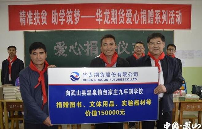 为积极响应党中央关于“精准扶贫”的各项文件精神,进一步贯彻落实中国证监会和中国期货业协会关于结对帮扶贫困县行动相关要求,认真履行企业社会责任,2017年9月22日,华龙期货股份有限公司结对帮扶小组和代表深圳证券交易所、武山县县委的何卫东县长一行专程赴天水市武山县温泉镇包家庄九年制学校举行“精准扶贫,助学筑梦”爱心捐赠活动。