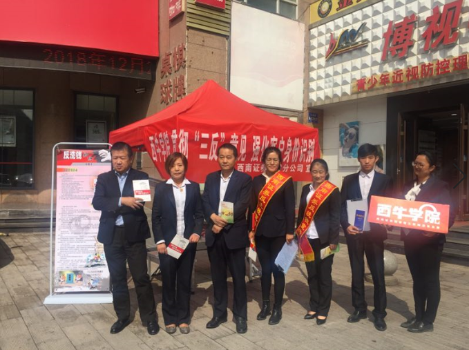 为进一步提高社会公众对洗钱和恐怖融资危害的认识,让社会公众积极关注反洗钱、了解反洗钱、参与反洗钱,夯实反洗钱工作社会基础,由西南证券投教基地西牛学院组织策划,甘肃分公司承办,于2018年10月25日举办了以“贯彻‘三反’意见,强化客户身份识别”为主题的投资者教育活动。