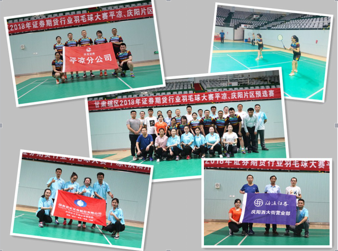 2018年5月17日,甘肃辖区证券期货行业2018年羽毛球大赛片区预选赛正式开赛,经过1个多月的激烈角逐,10个片区参赛队均已产生。加上甘肃证监局代表队、甘肃省社会组织管理局代表队、华龙证券公司总部代表队、华龙期货公司总部代表队、甘肃股权交易中心代表队、甘肃省上市公司董秘证代代表队等6个种子队将于7月在兰州举行总决赛,让我们拭目以待各路选手的精彩表现。