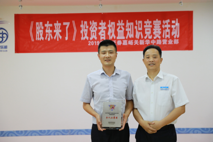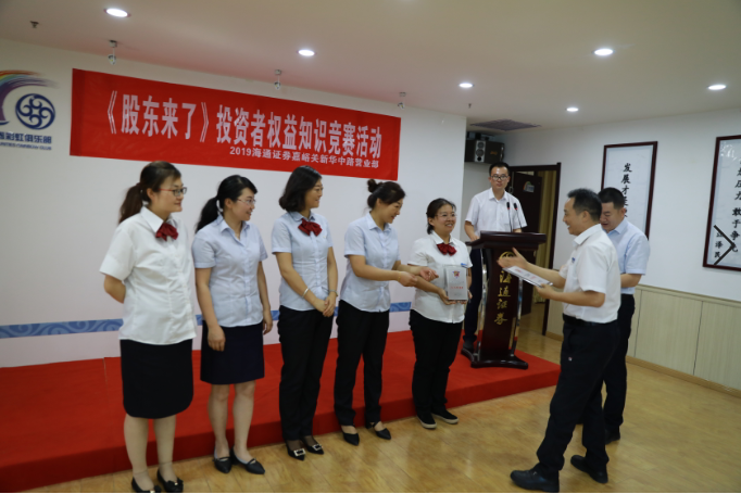 为进一步落实中国证监会党委关于资本市场人民性的要求,保护投资者合法权益,嘉峪关新华中路营业部积极组织参加了由中证中小投资者服务中心(简称投服中心)和央视财经频道联合举办的《股东来了》2019投资者权益知识竞赛活动。营业部高度重视,全员参与竞赛答题,同时号召营业部客户积极参与,开启了《股东来了》2019的全新征程。