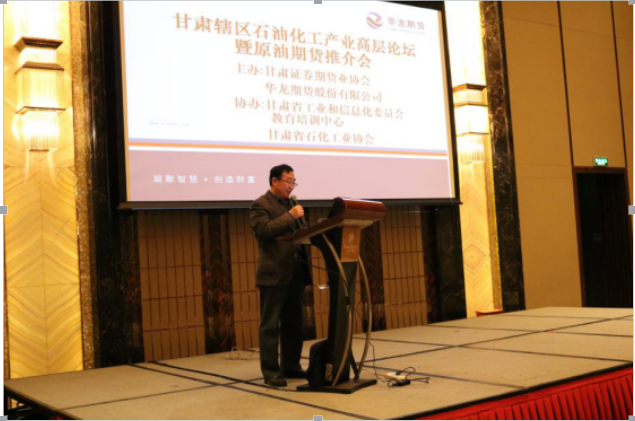 在原油期货上市前夕,为迎接原油期货上市,加强甘肃辖区原油期货知识普及与市场推广工作,帮助能源化工类企业学习和利用原油期货,发挥原油期货在风险管理中的积极作用。3月24日,甘肃辖区石油化工产业高层论坛暨原油期货推介会在兰州万达文华酒店隆重举行,本次培训会由甘肃证券期货业协会和华龙期货联合主办,甘肃省工业和信息化委员会、甘肃省石化工业协会协办,此次培训会共吸引了100余名企业代表与投资者参加培训。