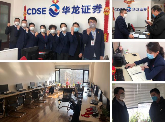 作为证券公司一线员工,我们就是现场投资者的守护者。2月3日,在投资者到来之前,营业部员工先对现场整个区域进行消毒,准备好体温计、消毒液等防控物品。针对部分来现场的投资者,营业部员工耐心劝导,为部分年长客户教会使用手机、电脑等软件终端交易,为投资者提供24小时坐席电话、微信qq等服务渠道,将客户服务工作放在首位。因为我们深知,这里的每一位投资者都牵系一个家庭,每一位投资者的平安,每一个家庭的健康,都是我们健康中国的坚固基石。开年第一个工作日,营业部员工齐心协力,快速成功地将所有现场客户劝离,并在家中通过微信、电话等途径做好客户服务工作,不断在投资者中注入暖流,告诉投资者虽不能见面,但我们一直在。在这特殊时期,华龙证券雁滩营业部定会为疫情防控工作站好岗。