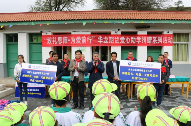 捐赠仪式上,华龙期货副总经理胡佳艺对武山县县委县政府、县教育局、金融办为此次爱心捐赠搭建的平台表示感谢,感谢深交所扶贫团队和华龙证券对此次活动的大力支持和积极推动,并对温泉镇全体教师致以节日的祝贺。此次捐赠活动包括对温泉镇草川小学和李子沟小学、温泉镇全体教师的物资捐赠,捐赠金额共计20万元。希望通过捐赠,帮助两所学校建立和完善图书室、美术室、音乐室、电脑室等教学功能室,使山区孩子们能享受到公平的教育和优质的教学资源,同时把关怀教师,发展教育作为扶贫的重点内容,弘扬中华民族的传统美德,努力营造尊师重教的浓厚氛围。