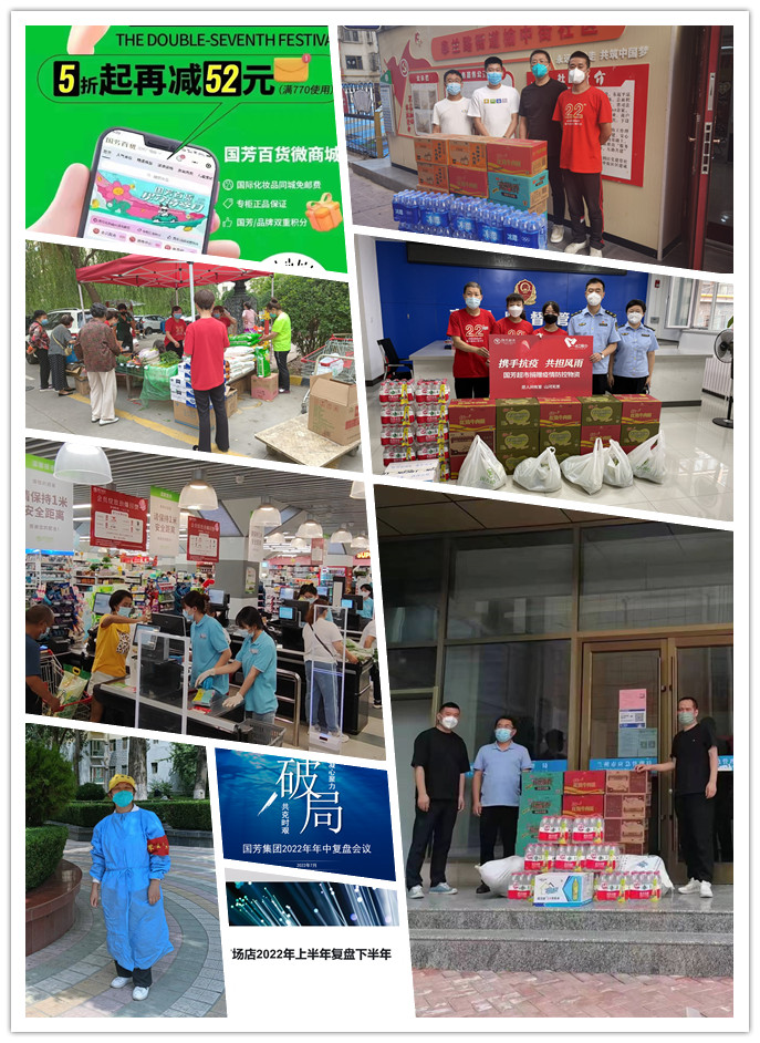 疫情常态化管理已成为三年多来公司运营管理的核心工作之一,集团防疫领导小组反应敏捷,号召、组织、快速联动卓有成效。在预防性工作方面,公司在防疫物资准备、常态化消杀、日常“一扫三查”、员工赴外行程提级管理等诸多方面已建立管理机制、工作标准;“打好一切有准备的仗”就是使命必达!本轮疫情时,公司积极响应政府防控要求并立即启动内部应急措施。兰州国芳百货闭店期间,大力推动线上商城业务,并全力保障消费者配送服务;集团旗下各超市门店进入紧急响应状态,全面加大保供力度,在多数员工被封控在家的情况下,加大蔬菜、水果、米面粮油、方便食品、日配商品的订货供应;物业部门重点加大服务公共场所消杀力度,严管各场所进出入口,严控临时流动人员的不规范流入;各公司及时了解员工居家封控情况,对家庭困难、个人出行起居困难的员工进行摸底,帮助员工解决燃眉之急;公司各门店积极与属地社区联系,设立就近核酸点、确立社区保供点、专属向高风险区域定点供应、向防疫工作人员定点保供。一切行动都在高效、有序中进行!