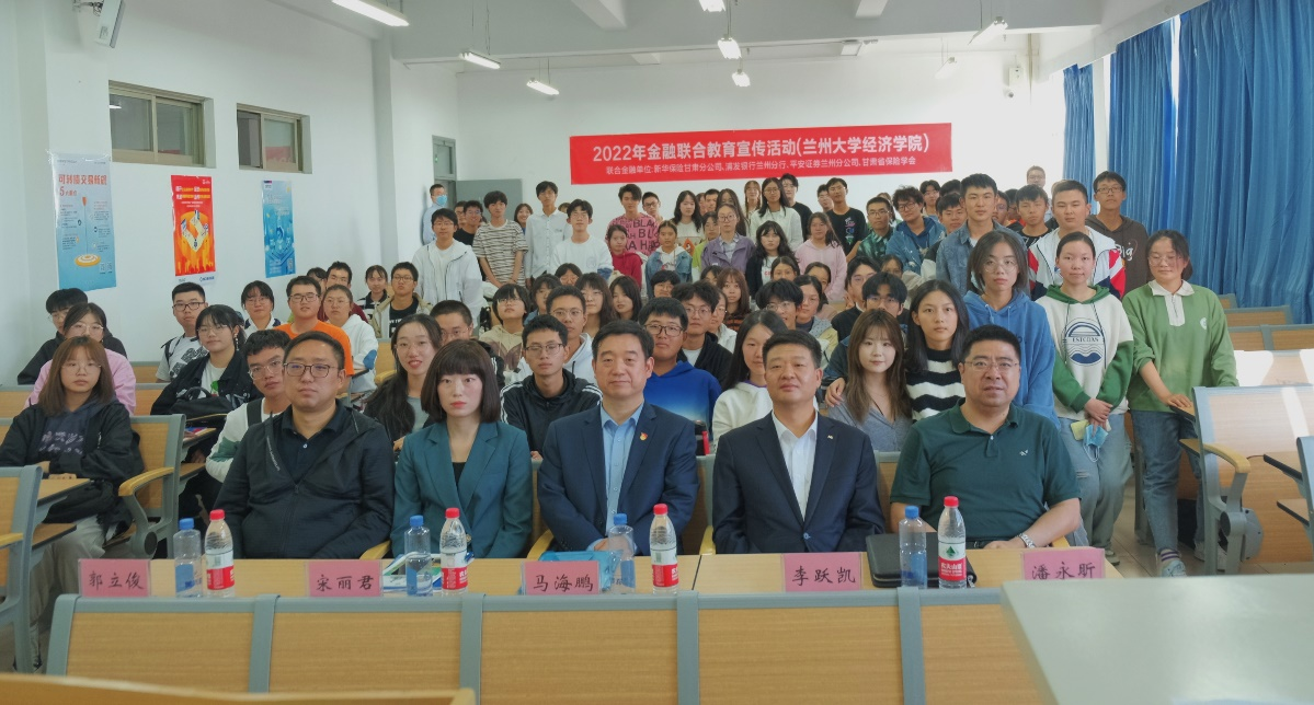 为响应甘肃证监局2022年“金融知识普及月 金融知识进万家 争做理性投资者 争做金融好网民”宣传教育活动,积极落实投资者教育责任,加强高校学生金融知识普及,2022年9月29日,平安证券兰州分公司、浦发银行兰州分行、新华保险甘肃分公司共同举办“2022年金融联合教育宣传活动-走进兰州大学”。平安证券兰州分公司总经理宋丽君,浦发银行兰州分行党委书记、行长李跃凯,新华保险甘肃分公司党委书记、总经理郭立俊一行以及兰州大学120余名师生参加本次活动。