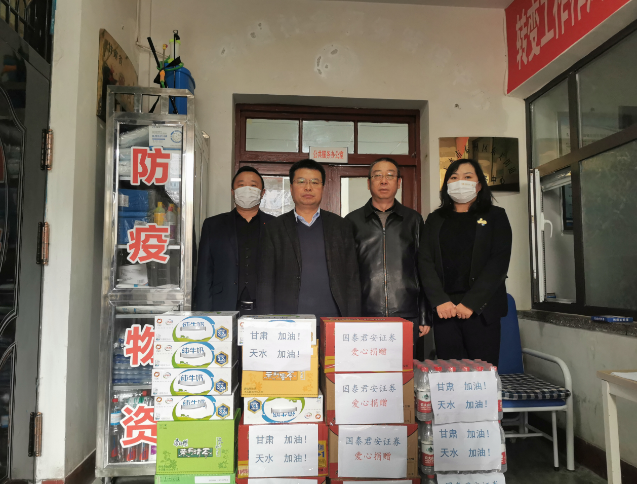 国泰君安证券天水建设路营业部始终情系天水,心系抗疫一线,积极响应号召,用实际行动践行新时代的使命与担当。在得知东关社区一线防疫人员生活物资较为紧缺后,营业部总经理张迎新同志,马上与社区相关领导取得联系。在了解具体情况后,立即组织营业部相关人员,安排各项采购工作,并于11月8日向东关街道办事处捐赠一批生活物资。为社区一线开展疫情防控的工作者提供了强有力的物资保障和支持,向坚守一线的同志送去关怀与温暖。同时,用实际行动诠释了国泰君安人参与疫情防控的责任感和使命感。