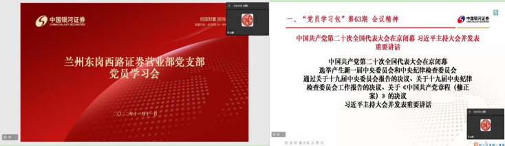 10月24日,中国银河证券兰州东岗西路营业部党支部组织营业部全体员工在线上开展了“书记讲党课”活动。