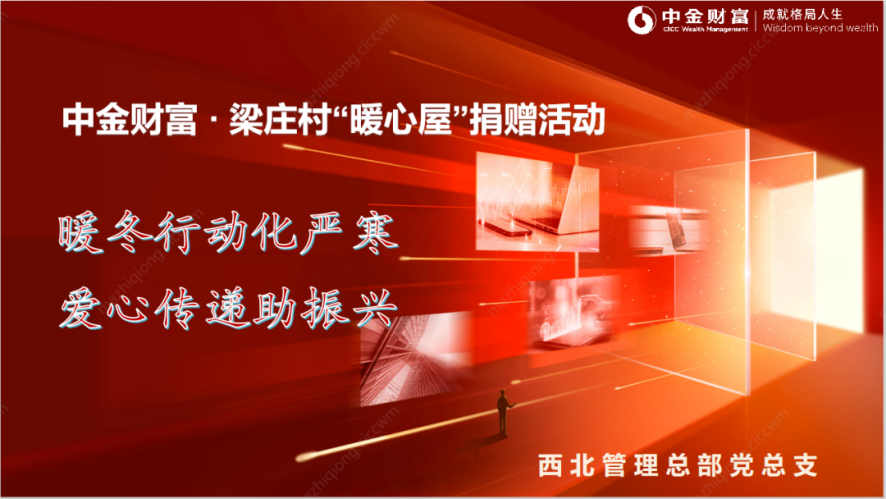 为深入贯彻落实党的二十大对乡村振兴工作的要求,着力解决广大群众“急难愁盼”问题,切实做好巩固拓展脱贫攻坚成果同乡村振兴有效衔接各项工作,12月7日下午,中金财富西北管理总部兰州营业部与会宁县粱庄村以视频直播的形式开展了“暖冬行动化严寒 爱心传递助振兴”爱心捐赠活动。中金财富执委会主任、总裁吴波,党委委员、副总裁王建力,党委委员、副总裁吴显鏖,执委会成员、业务总监刘付羽,党委办公室主任黄铭浩、副主任董海峰,西北管理总部党总支书记、负责人张璟,公司派驻粱庄村第一书记唐刚毅参与活动,活动由兰州营业部党支部书记张雅婷主持。
