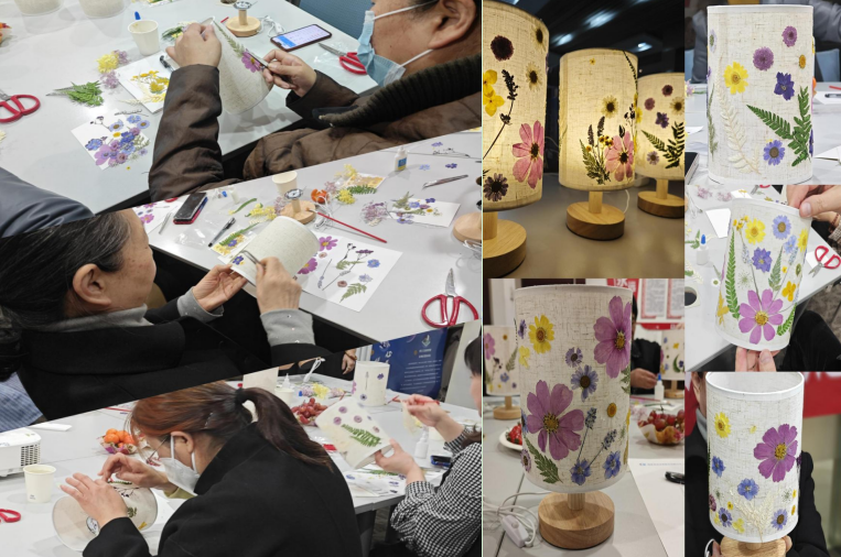 经过一个多小时的努力,一盏盏独一无二的压花台灯展现在大家面前。大家互相交流制作心得,并迫不及待地拍照分享自己的作品,现场欢声笑语不断,其乐融融。
