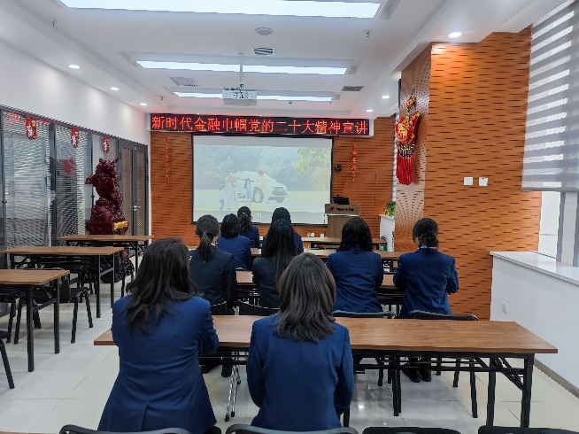 为打造金融系统家庭创文明、家庭重传承、家庭促教育、家庭助公益新风采,3月8日,分公司及营业部组织女职工观看“三八大课堂”--新时代金融巾帼党的二十大精神宣讲”。