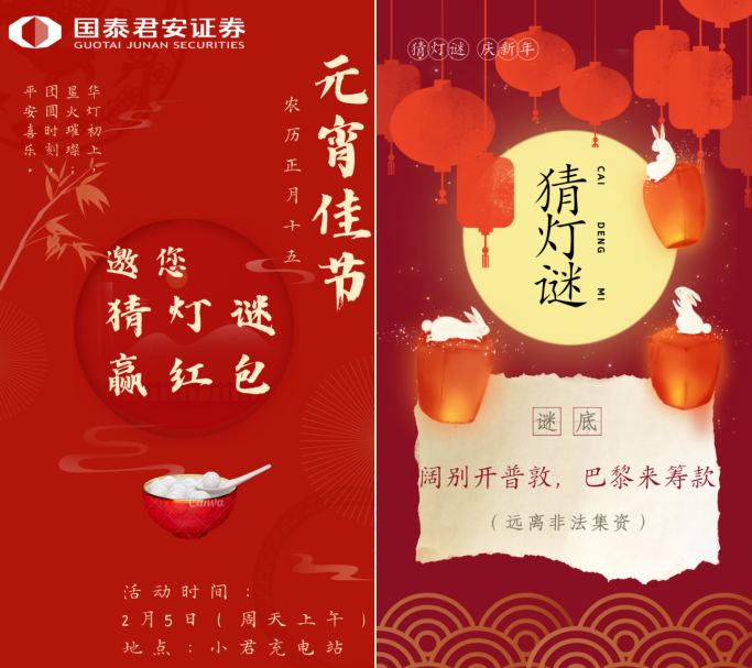 天上月儿圆,地上人团圆,一碗汤圆情万千。正月十五元宵节如期而至,吃汤圆、猜灯谜的传统习俗延续至今,为增添节日气氛,做好客户服务工作,国泰君安证券兰州酒泉路营业部线上举办了“闹元宵 猜灯谜”活动,积极邀约客户参与,共度元宵佳节。
